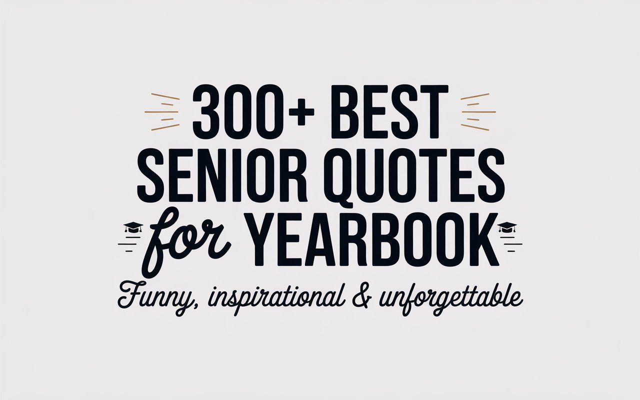 A good senior quote for a yearbook is one that reflects your true personality – whether that’s funny, inspirational, sentimental, or clever. The best senior yearbook quotes are authentic, memorable, and ideally something you’ll still smile at 10 years from now. Avoid overly long quotes; keep it under 2–3 sentences for best impact. Popular choices include lines from pop culture, song lyrics, original jokes, or timeless wisdom from figures like Dr. Seuss, Taylor Swift, or Winston Churchill.